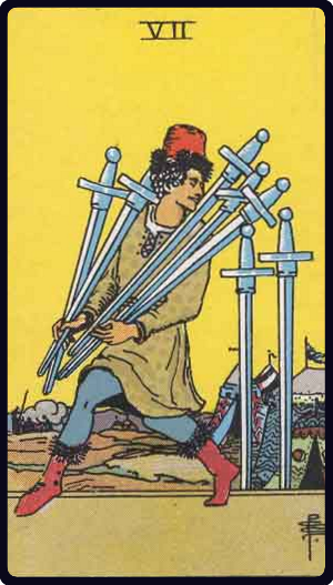 The 7 of Swords suggests that your wound affects your relationships by trying to outsmart the situation. Instead of addressing your wound head on, you’ve developed a work around. This could involve deception: telling lies to a partner or developing sneaky plans. It can also indicate you are at the point where you believe your own fabrications and distortions of reality to avoid facing uncomfortable truths about yourself.